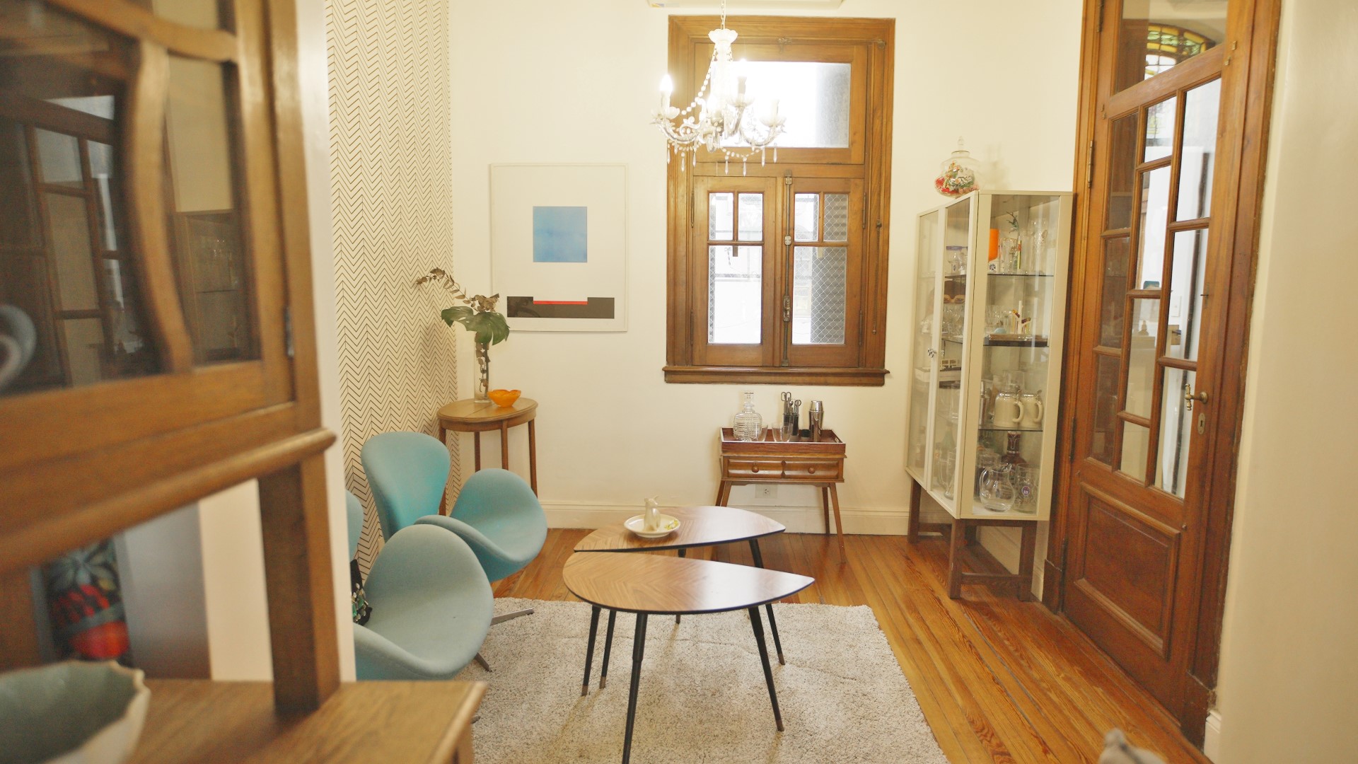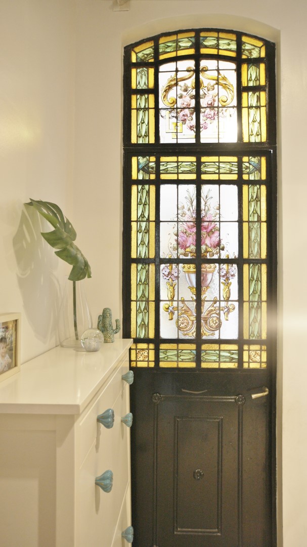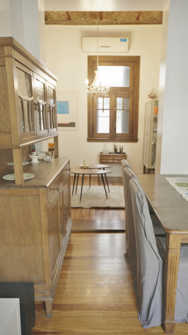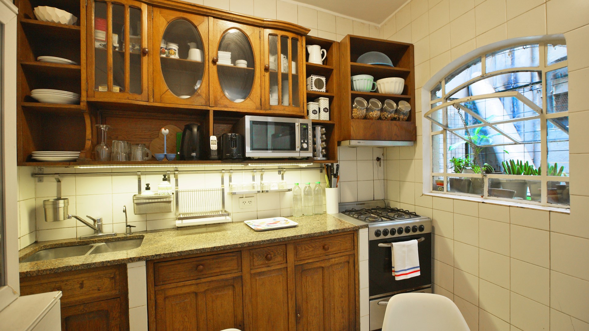Por la hermosa puerta de vitreaux antigua pasamos al pasillo con ventanal y pisos originales calcáreos e instalación de tiro balanceado, llegando hacia la cocina con comedor diario, con dos ventanas a los patios internos de la casa, con mueble antiguo aparador de roble de Eslavonia bajo y sobre mesada. Spar eléctrico de muy buen diseñado integrado respetando las líneas originales del mueble y luces led bajo el mueble sobre mesada. Instalación de AA.