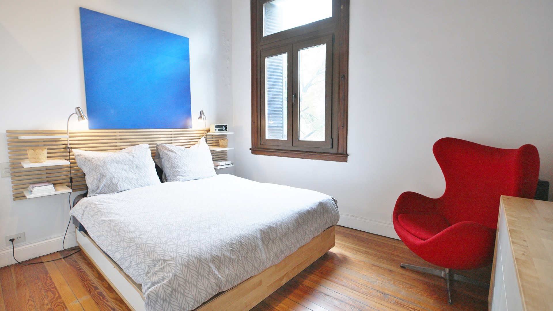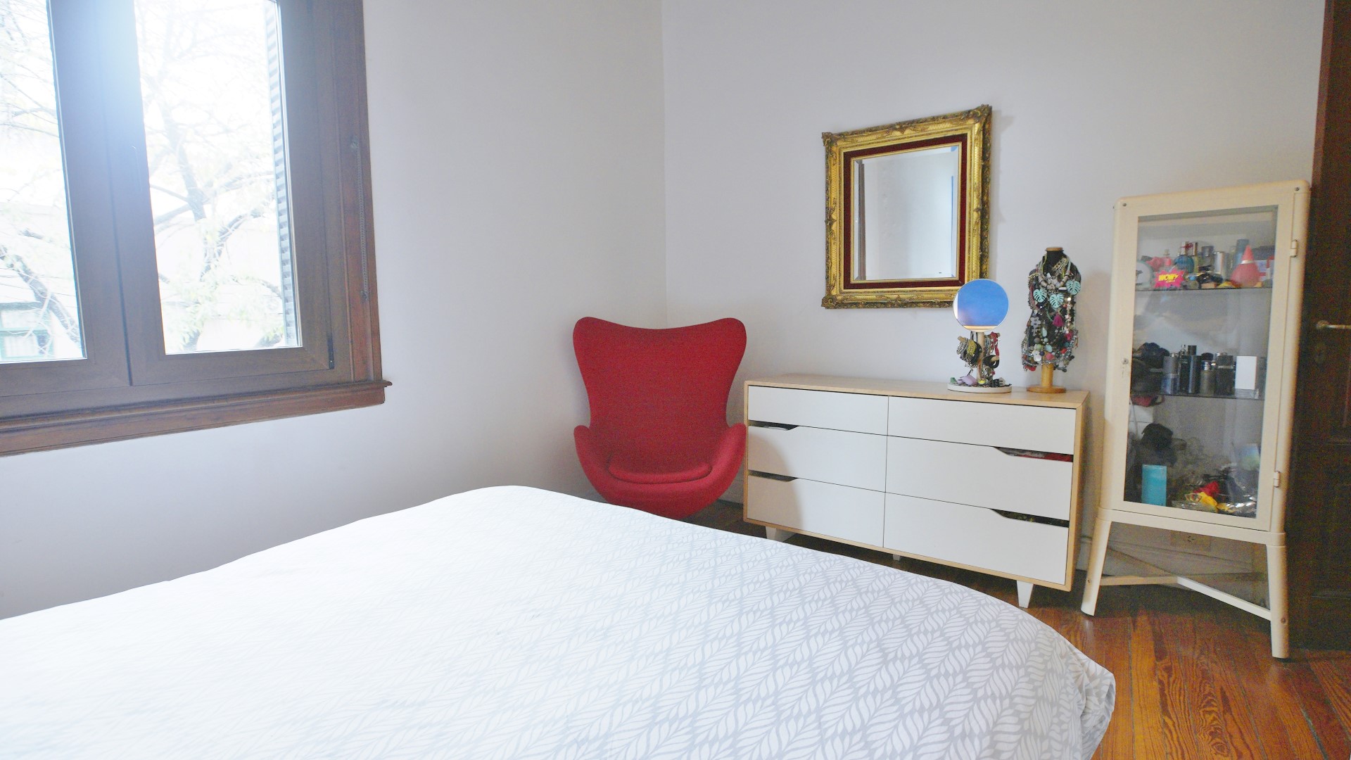 Habitación 1 principal de muy buenas medidas con doble puerta de acceso, vestidor “walking closet” y ventanal doble vidrio basculante donde se mantuvo el diseño y marco original. Instalación de AA y tiro balanceado.