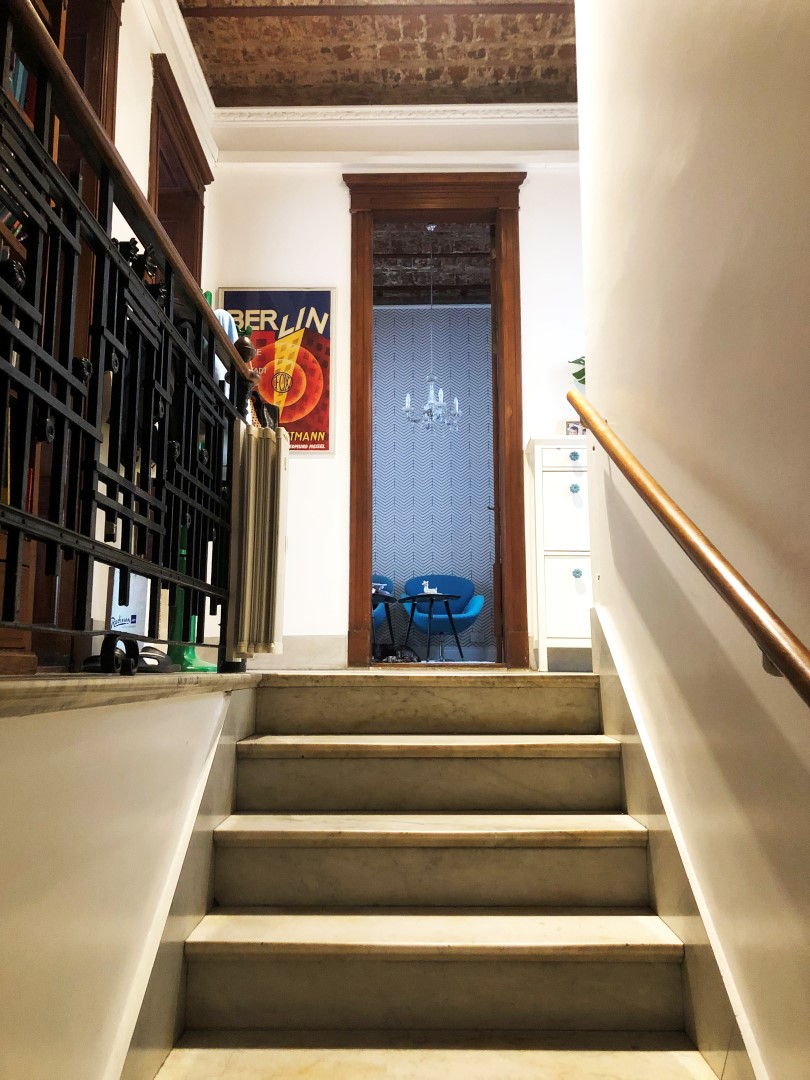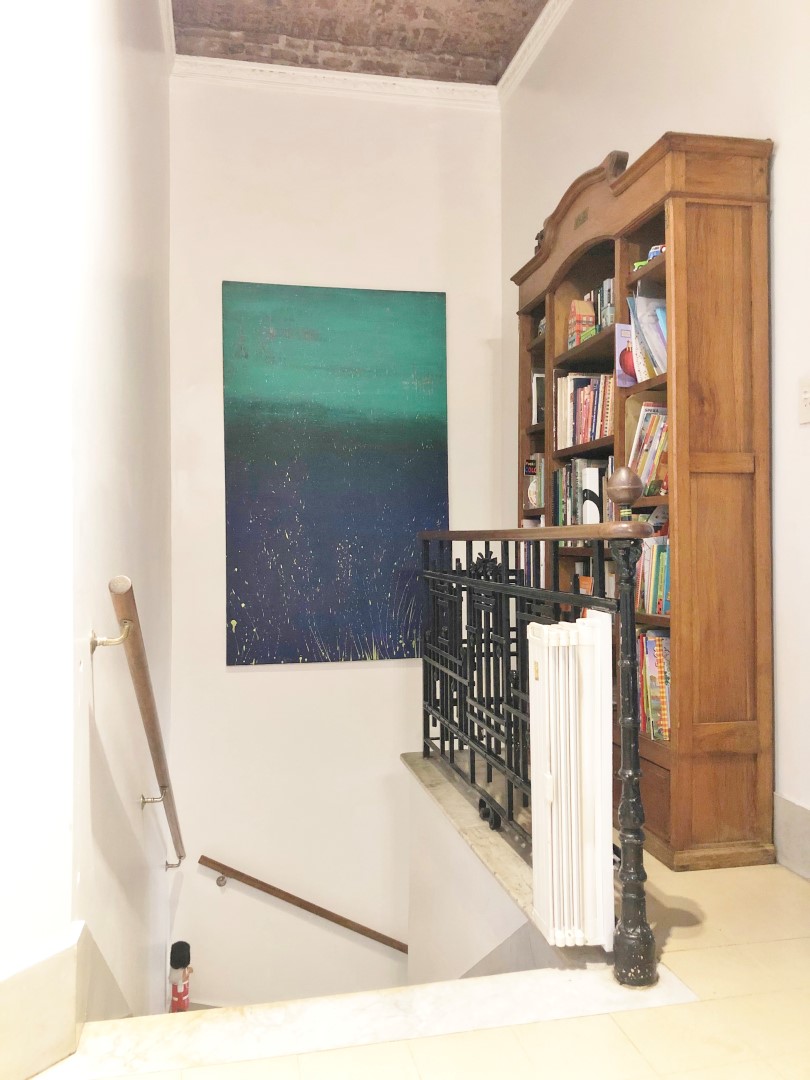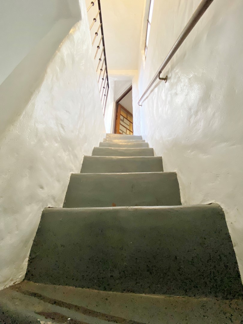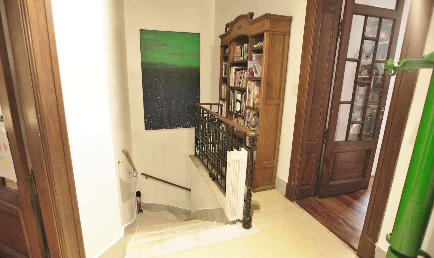 Por la escalera llegamos al primer piso con baranda de hierro y pisos originales calcáreos.